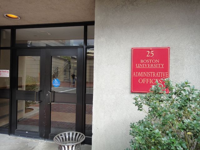 タクシーでボストン大学の管理オフィスへ。