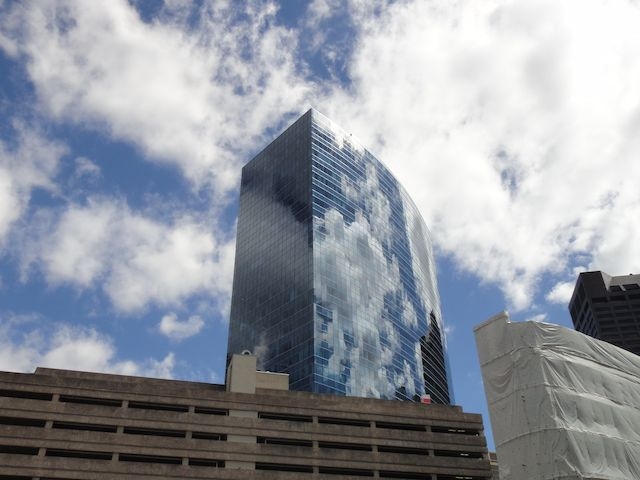 高いビルもけっこうあります。窓に映った空がうつくしい。