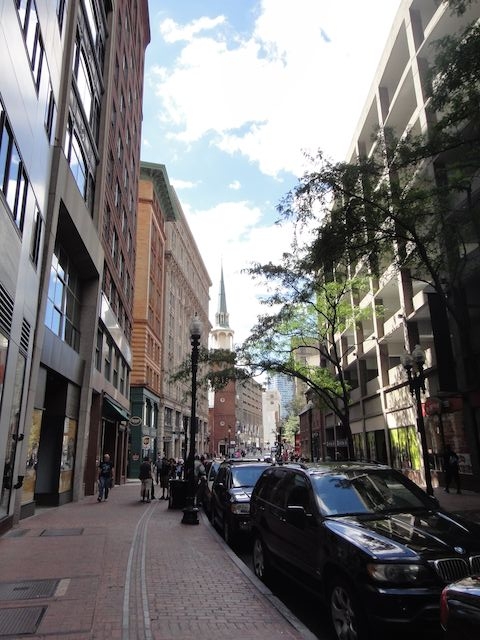 正面真ん中(遠く)にあるのが、Old State House (旧州会議事堂)。独立のきっかけのひとつとなったボストン虐殺はここの正面でありました。ボストンで一番古い建物だそう。