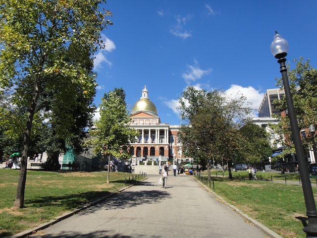 コモンパークの近くにある、マサチューセッツ州議事堂。