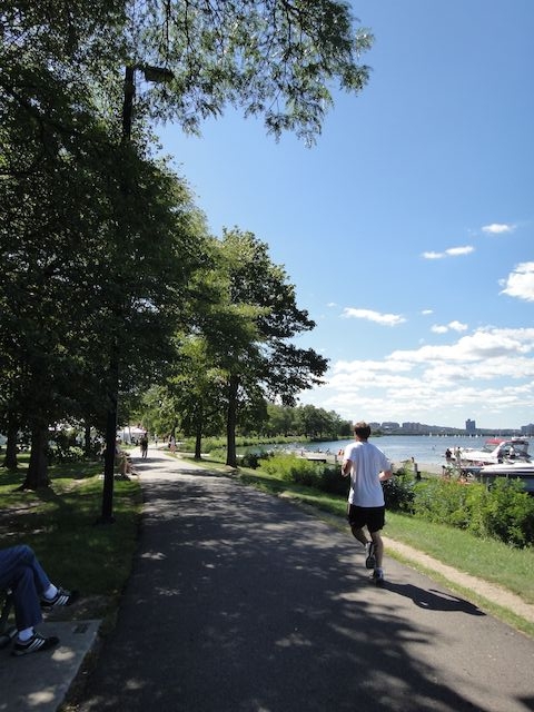 チャールズ側沿いの散歩道。みんなのびのびと休日を楽しんでる感じ。